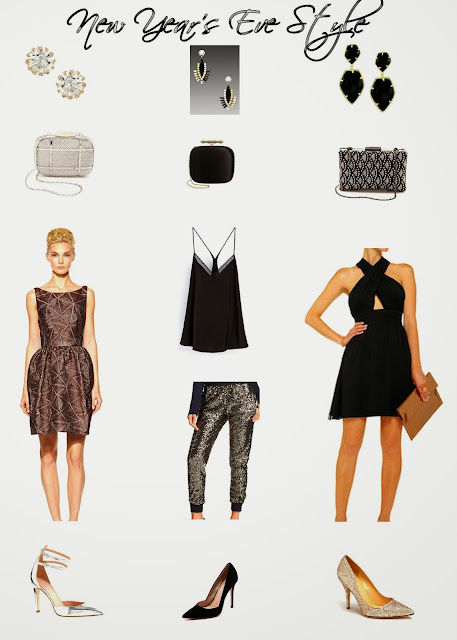 This year I'm looking forward to a small, low key New Year's Eve celebration with friends where I'll probably opt to wear something comfortable that I already have in my closet.  But when I think of NYE, I picture black, metallics, and lots of shimmer and sparkle, so I couldn't help but dream up a few more glamorous options.